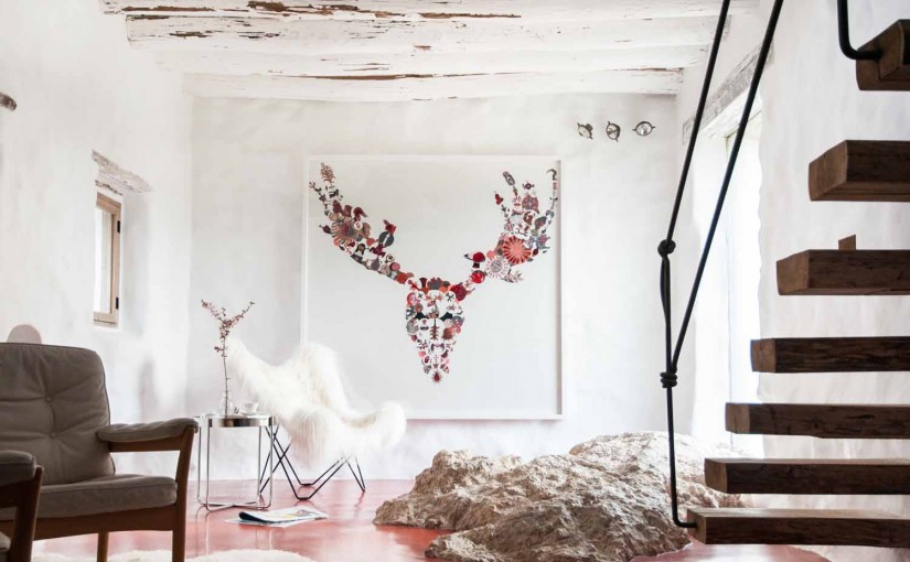 Las obras de arte contemporáneas pertenecientes a la colección particular de sus propietarios están presentes en todas las zonas de esta casa de 1.000 metros cuadrados en la que tampoco faltan elementos decorativos naturales, esmerados floreros con flores provenientes de su jardín, así como libros de temática medio ambiental, de  botánica, de caballos o de eco-agricultura.