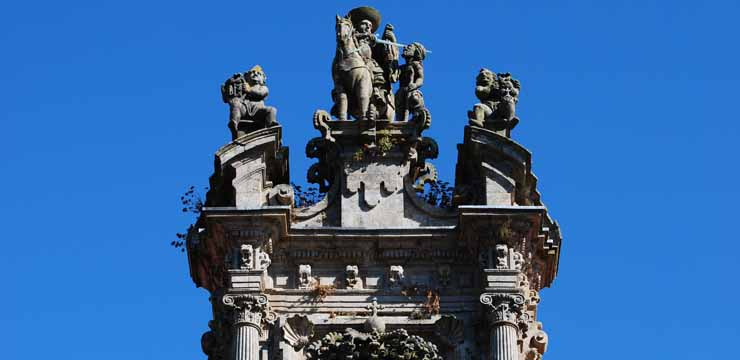 Santiago, es un mágico escenario en el que de una forma mística, la piedra deambula entre la niebla o “brétema”, y el sol. Su Catedral, junto con varias plazas y edificios, iglesias, conventos, una impresionante universidad, y probablemente el más famoso de los Paradores Españoles, el de los Reyes Católicos, plasman varios estilos arquitectónicos que reflejan el paso del tiempo, y que con la lluvia compostelana, otorgan a la ciudad, un perfil artístico que se ha convertido casi en tópico. Aquí, el musgo y la lama parecen aferrarse a los monumentos que les dan cobijo, con la misma fe con que los peregrinos arriban a la ciudad.