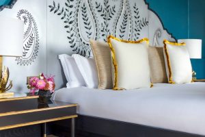 Cada habitación incorpora en absoluta armonía dichos elementos tradicionales junto a delicados tejidos bordados y otras piezas especialmente creadas a medida por artesanos locales.