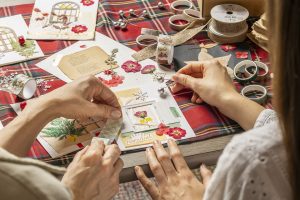 Las sesiones permiten crear felicitaciones navideñas con papeles estampados, fotografías, frases personalizadas y pequeños elementos decorativos que aportan textura y color. Cada asistente elaborará dos tarjetas exclusivas, ideales para enviar durante las fiestas o para decorar la casa en diciembre.
