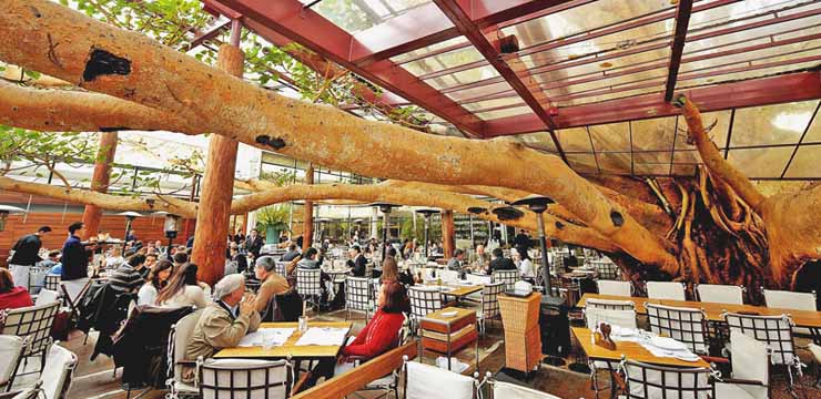 Su comedor se encuentra a la sombra de una higuera asiática de 50 metros de altura y más de 130 años de antigüedad, que es la que le da el nombre al lugar. Todo un escenario tropical que parece recrear una escena de la selva en esta jungla de asfalto que es Sao Paulo.